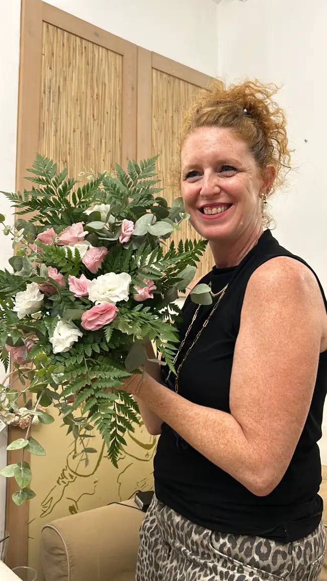 סדנת שזירת פרחים מרגשת ומקוצרת של כ-40 ד' עד שעה בלב השכונה אצל מיכל פרחים נווה צדק עם תוצר יפיפה של זר אישי הביתה